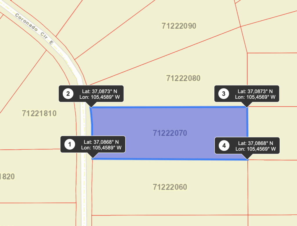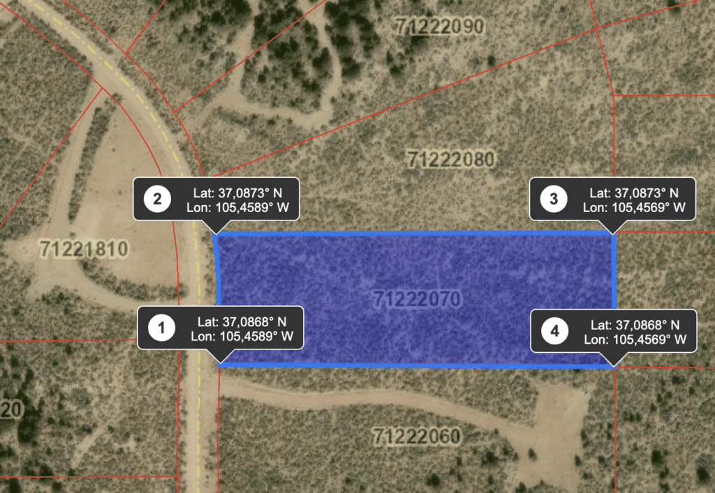 The land is located inside of the wild horse mesa subdivision. There is no time limit to build. So feel free to use it for camping or seasonal visits til you are ready to build. Less than 10 minutes to the west (3.1 miles) you’ll reach Sanchez Reservoir.